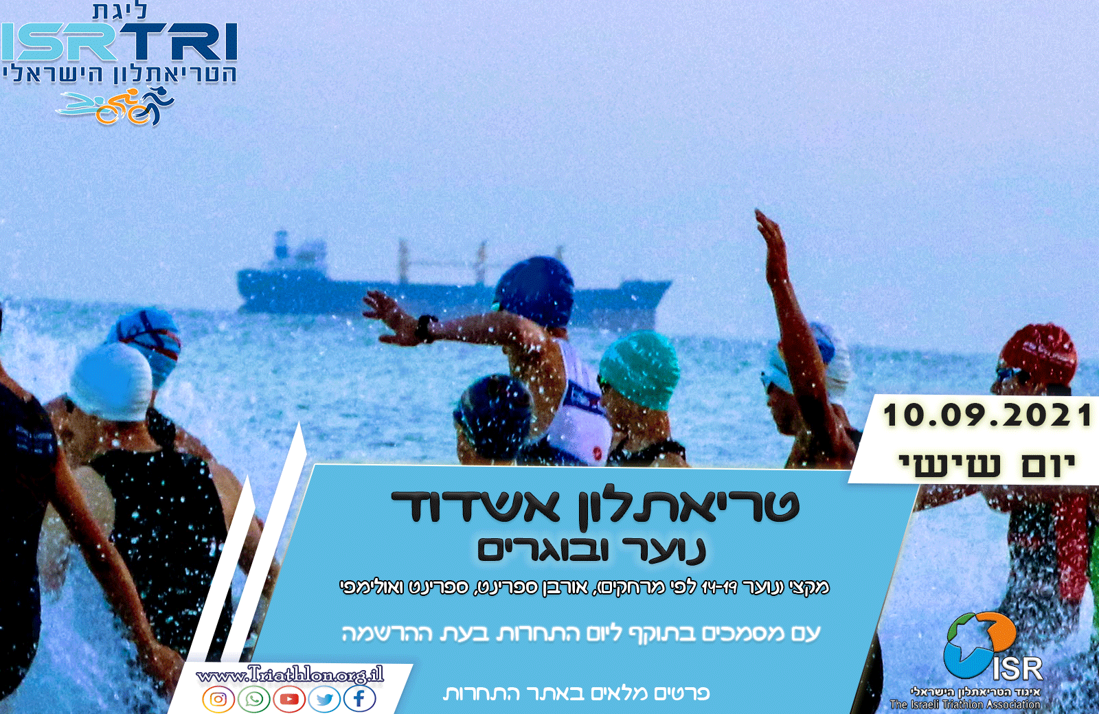 לאחר הפסקה של שנה בגלל אילוצי קורונה איגוד הטריאתלון הישראלי, עיריית אשדוד – הרשות לספורט העירונית ו Tri plus הפקת אירועי ספורט מזמינים אתכם לקחת חלק בטריאתלון אשדוד 2021. טריאתלון אשדוד, תחרות ללא דראפטינג בקבוצות הגיל ( ראו פירוט בנושא ). במקצי הנוער מאושרת רכיבה בדראפטינג, שחייה בחוף "באר שבע" רכיבה לאורך שדרות העיר לכיוון צפון, ריצה על הטיילת המרהיבה של אשדוד וסיום מרשים בחוף בצמוד לשטח ההחלפה. אז למה אתם מחכים… את זה לא כדאי לפספס…